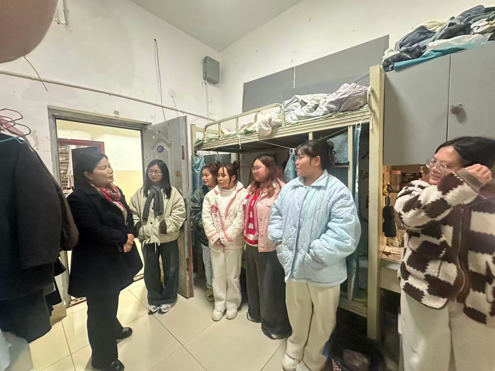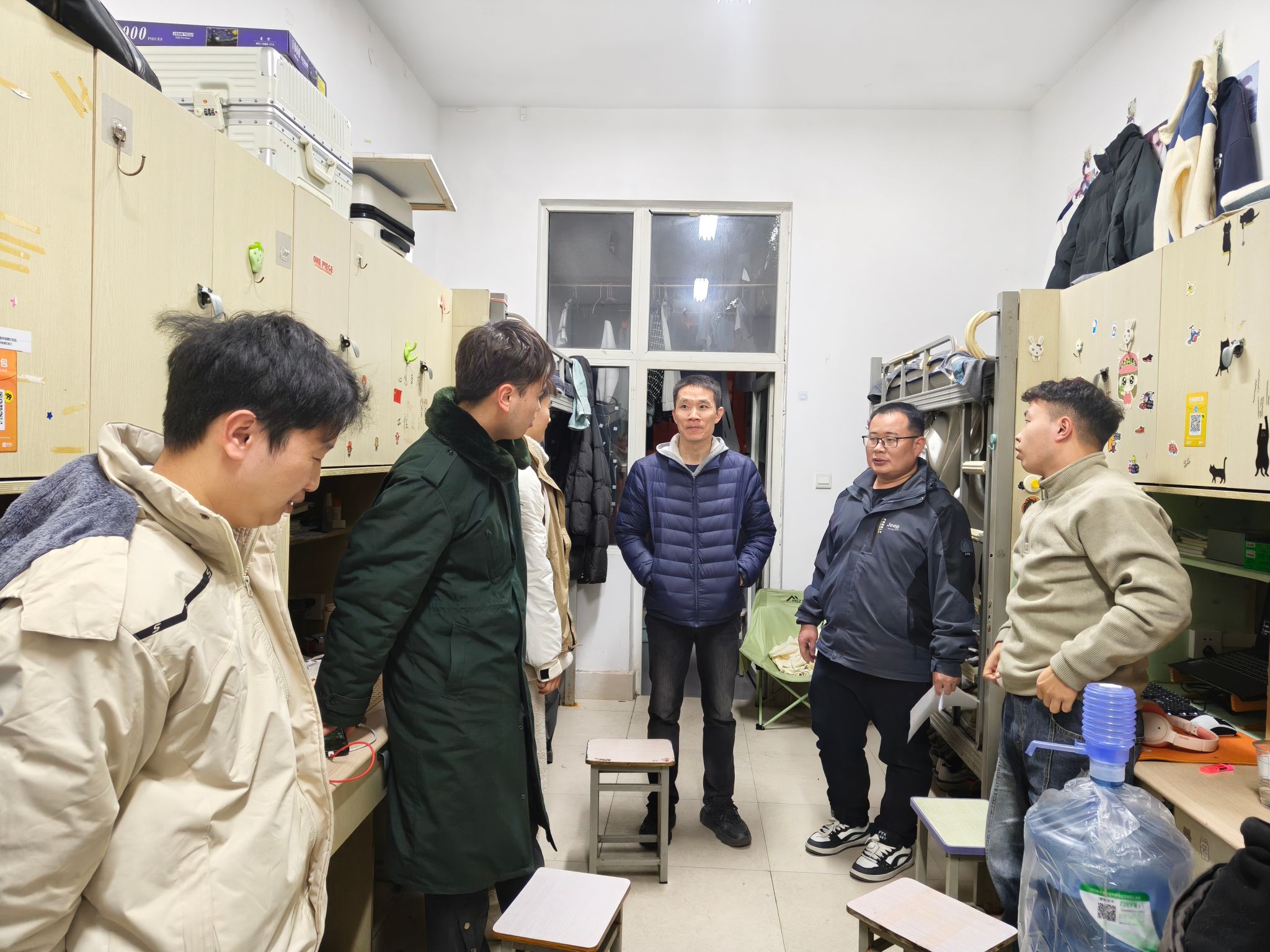 寒假将至,期末考试临近,为切实关心关怀员工,强化员工宿舍安全管理,深入了解员工思想动态与生活情况,营造安全、文明、和谐、健康的员工宿舍环境。公司领导班子成员与全体辅导员于12月24日至25日深入公司两校区员工寝室,开展了集中走访。